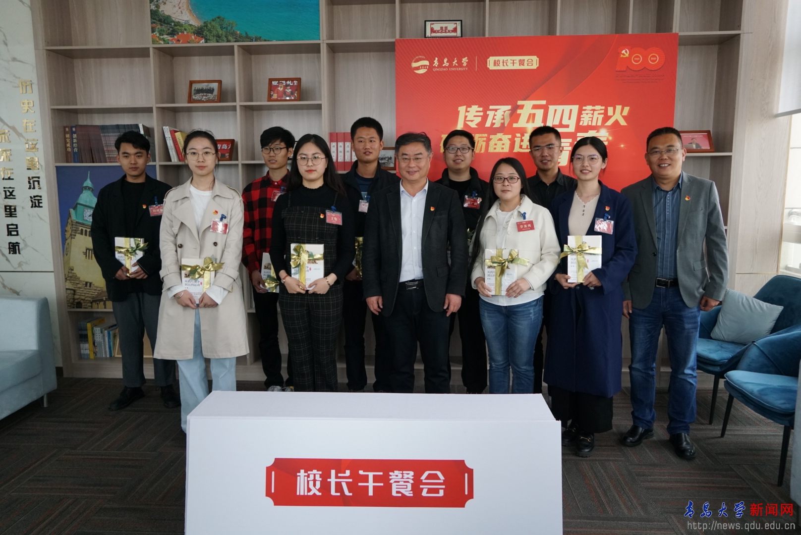新聞網(wǎng)訊 4月29日,我校舉辦第十三期“校長午餐會”活動,本次午餐會的主題是“傳承五四薪火,砥礪奮進(jìn)青春”,校長夏東偉與9位來自不同院系、專業(yè)的本科生、研究生、博士生代表一同參觀青島大學(xué)校史館并在浮山校區(qū)研發(fā)大樓B座17層印象青大休閑茶餐廳共進(jìn)午餐。