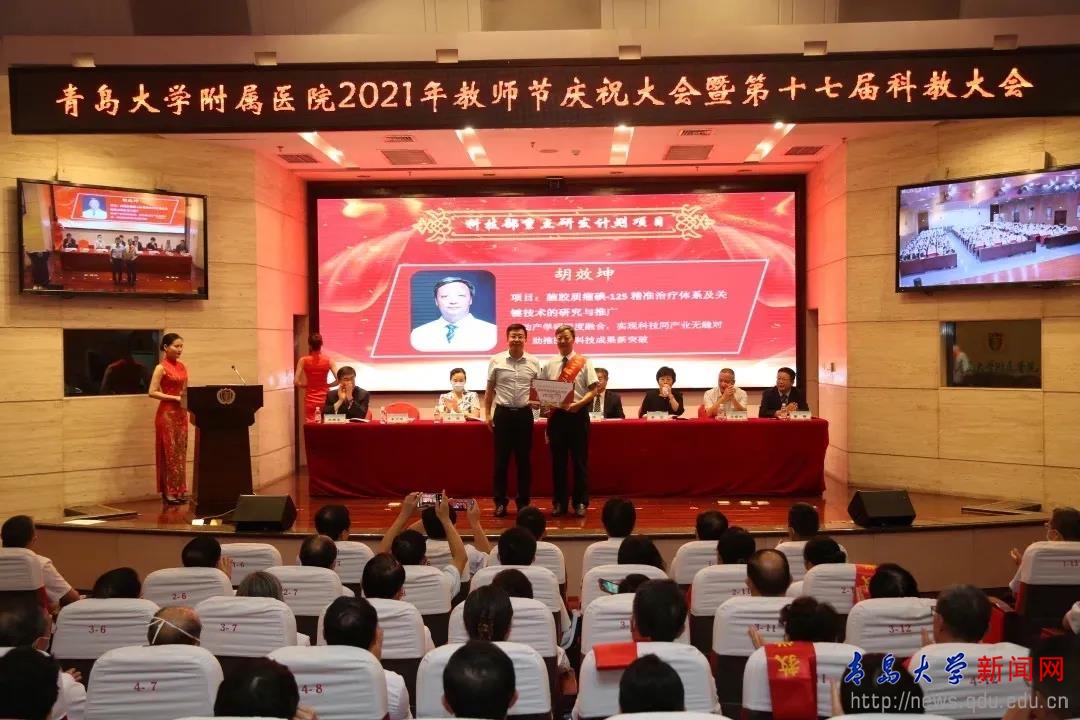 新聞網(wǎng)訊 9月6日下午,我校附屬醫(yī)院2021年教師節(jié)慶祝大會暨第十七屆科教大會、國家級項目動員誓師大會在附屬醫(yī)院市南院區(qū)學(xué)術(shù)報告廳舉行。校長夏東偉出席會議并講話,校黨委常委、副校長姜宏宣讀給全體教職工的賀信。