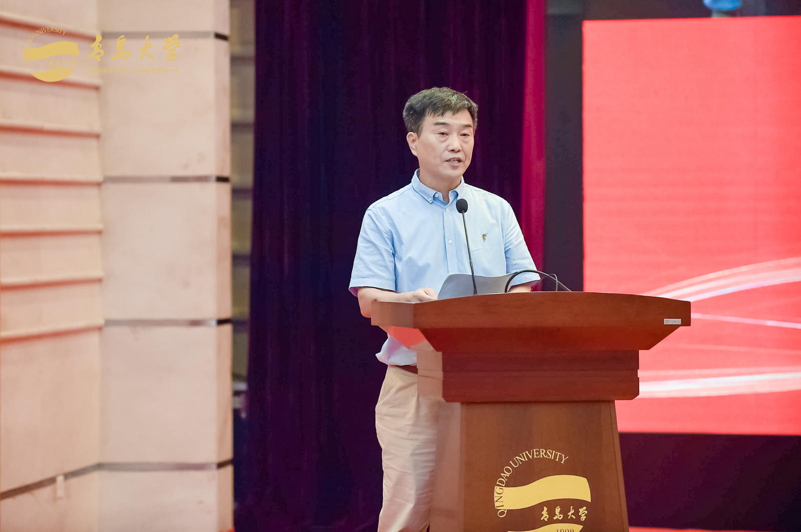 典禮上,夏東偉對各位研究生同學來到青島大學繼續深造,表示熱烈的歡迎和衷心的祝賀。他介紹了青島大學的師資隊伍和高層次人才現狀,以及學校高水平學科建設和學校事業發展情況;分享了習近平總書記在中國共產黨成立100周年大會上的講話精神;特別表揚了在抗擊新冠肺炎疫情作出突出貢獻以及在本科階段就取得優秀創新成果的研究生新同學。他指出,研究生是國民教育序列的最高層次,今天的研究生代表著國家明天的核心競爭力。