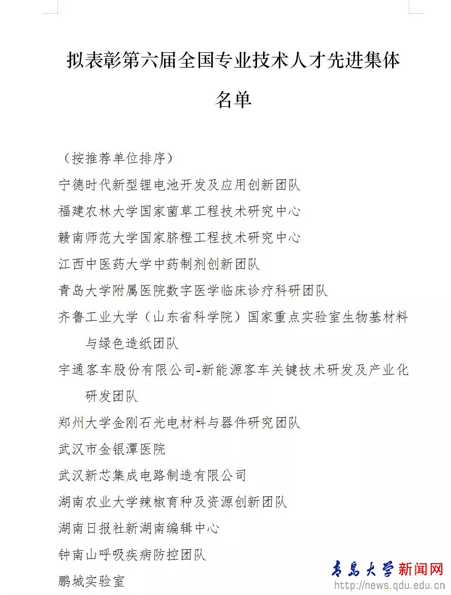 新聞網訊 10月28日,中共中央組織部、中共中央宣傳部、人力資源社會保障部、科技部召開第六屆全國杰出專業技術人才表彰大會。我校附屬醫院數字醫學臨床診療科研團隊作為山東省受獎代表,線上接受表彰。