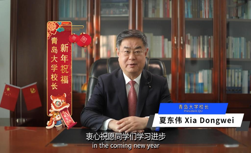 夏東偉代表學校向海內(nèi)外老師和同學們致以最親切的新年問候!他簡要介紹了學校基本概況和2021年學校取得的新發(fā)展。夏東偉充分肯定了學校來華留學工作在2021年取得的成績,為克服疫情影響堅持網(wǎng)上學習留學生們?nèi)〉玫倪M步,為在全國和山東省比賽中獲獎的同學,為辛勤付出的老師們給予了鼓勵和表揚。