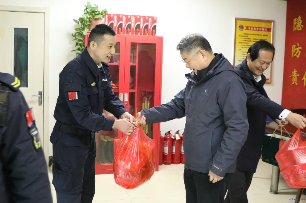新聞網(wǎng)訊 1月29日上午,校長(zhǎng)夏東偉帶隊(duì)看望慰問(wèn)了寒假期間堅(jiān)守工作一線的教職醫(yī)務(wù)員工。