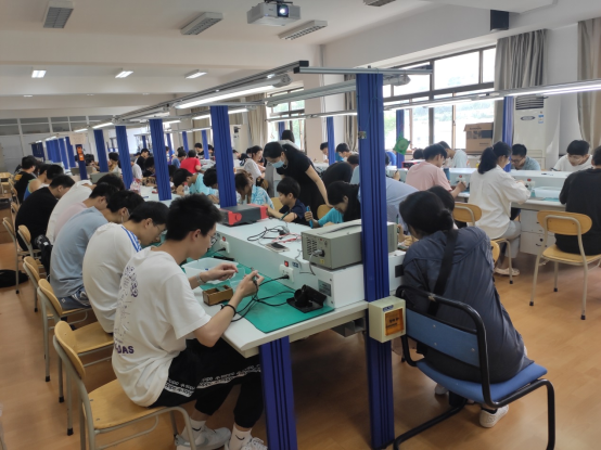 學校電工電子國家級實驗教學示范中心在每個夏季學期都人頭攢動、熱火朝天。中心不僅承擔了4個學院9個專業1790名學生5門實驗與實訓課程任務,實驗課人時數達3萬之多,同時組織29組學生團隊進行的暑期培訓,備戰7月底山東省大學電子設計競賽。