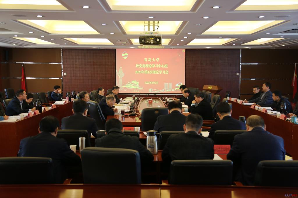 新聞網訊 3月9日上午,校黨委理論學習中心組在辦公樓第一會議室舉行理論學習會。校黨委書記胡金焱主持學習會并講話,校領導夏東偉、杜方波、李軍、范玉斌、劉彩云、孔偉金、吳世珍、徐龍飛參加會議。