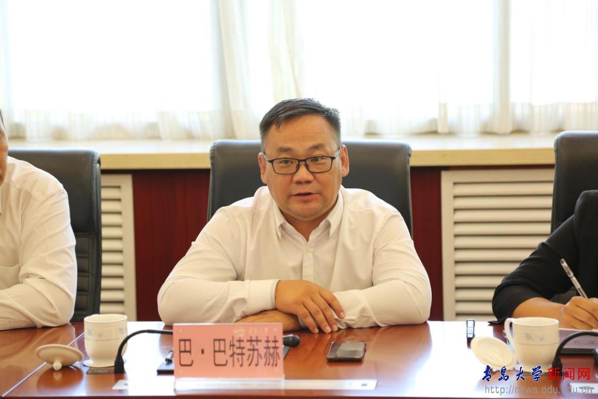 夏東偉對代表團來訪表示熱烈歡迎,他簡要介紹了青島市和青島大學基本情況和發展概況。他表示,青島是中國北方GDP排名第三的城市,擁有海爾、海信、青啤等世界知名的品牌,是中國重要的制造業基地。青島大學堅持服務青島經濟和社會發展,將學校的學科專業整合成醫學與生命健康、紡織與先進材料、新一代信息技術、師范教育、文化創意、新能源和經濟管理與社會治理創新等七大學科集群。他指出,兩校在師生交流、合作辦學、學生培養、上合組織國家區域國別研究等領域均有非常廣闊的合作前景,蒙古國立大學科布多分校前身為科布多國家師范學院,師范教育專業同時也是青島大學的優勢學科,希望未來兩校可以加深包括師范教育在內的各學科領域合作,實現互利共贏,共同發展。