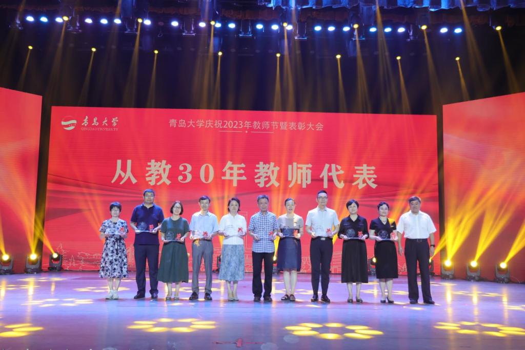 大會以“躬耕教壇 強(qiáng)國有我”為主題,表彰了從教滿30年教齡的教師代表及榮休教師、青島大學(xué)“教學(xué)十佳”“師德標(biāo)兵” “師德先進(jìn)集體”“服務(wù)育人先進(jìn)個(gè)人” “服務(wù)育人先進(jìn)集體”“優(yōu)秀教師”“優(yōu)秀教育工作者”“最美教師” “青島市教學(xué)名師”,以及“第三批山東省高校黃大年式教師團(tuán)隊(duì)”。