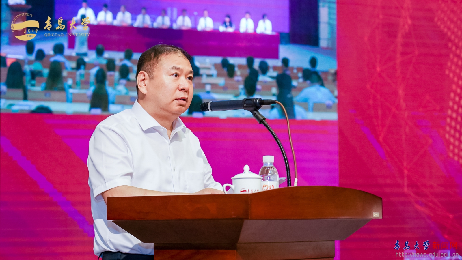 校長夏東偉在開學典禮上對各位研究生同學來到青島大學繼續深造,表示熱烈的歡迎和衷心的祝賀。他特別表揚了在援藏、南疆教育扶貧和新冠肺炎疫情期間作出突出貢獻的研究生新同學。指出,當今世界正處于百年未有之大變局,新一輪科技革命和產業變革已經撲面而來,人才成為科技尖端領域爭奪的戰略資源。他希望,各位研究生能夠崇尚真理、追逐夢想,勇于突破知識邊界、敢于探索未知領域,為人類的知識寶庫添磚加瓦,為中華民族的偉大復興貢獻力量。并對研究生同學提出了三點希望:一是創新需要拓寬眼界,最關鍵的是積極探索。希望同學們,能夠在科研過程中勇立潮頭、耐住寂寞,在創新的道路上積極探索,永葆熱情。二是創新需要提高境界,最關鍵的是堅持不懈。希望同學們,潛心研究、不怕吃苦,朝著心中的理想只爭朝夕,不負韶華。三是創新需要涵養格局,最關鍵的是使命擔當。希望同學們涵養格局、勇擔使命,將個人的探索研究和國家需求、人民需要結合起來,將個人命運與國家、民族融為一體。寄語同學們要將學術夢想根植于推動人類文明進步之中,將學習實踐融入到新時代的改革發展之中,以擁抱世界的胸懷,成為擔當民族復興大任的時代新人。