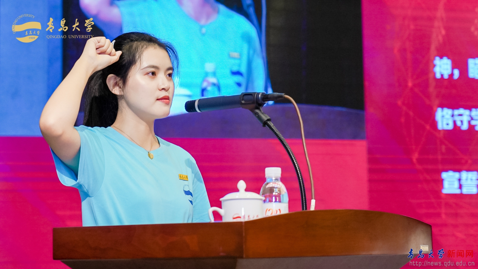 新生入學教育上,校黨委書記胡金焱進行了開學第一講。他首先代表學校祝賀同學們到青島大學攻讀研究生,同時也歡迎大家進入一個新的學習階段。他結合自身帶研究生的體會,對研究生提出了五點要求: