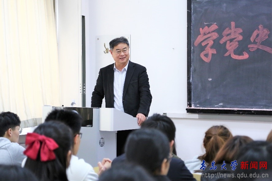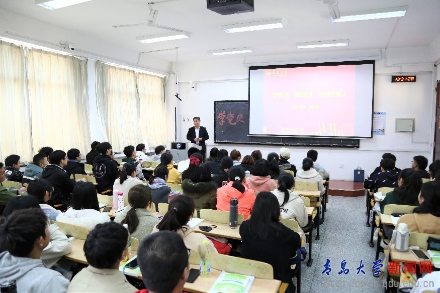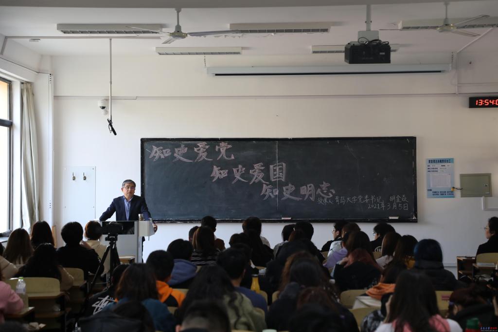 3月5日下午,校黨委書記胡金焱在浮山校區博學樓204教室以“知史愛黨、知史愛國、知史明志”為題,為新聞與傳播學院2020級100余名本科生講授思政課。