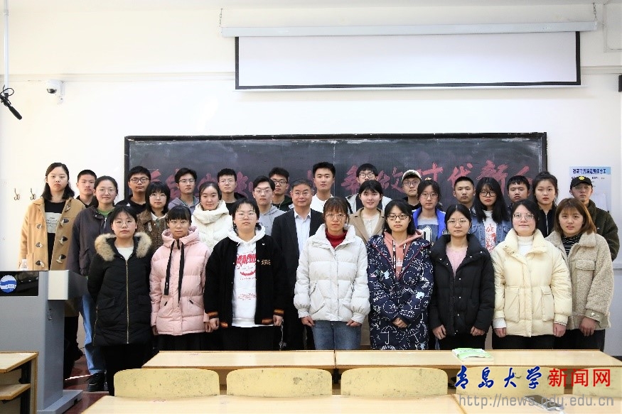 “同學們,我是1979年來青島大學讀書,比同學們早來青大41年,所以我首先是大家的學長,然后才成為大家的校長。”夏東偉一上來就跟同學們親切地說道。在接下來的兩節課時間里,夏東偉從“愛國之卷”“時代之卷”“青春之卷”三個層面給同學們講述了黨史和新中國史、校史和學校紅色基因,并對同學們提出了殷切期望。