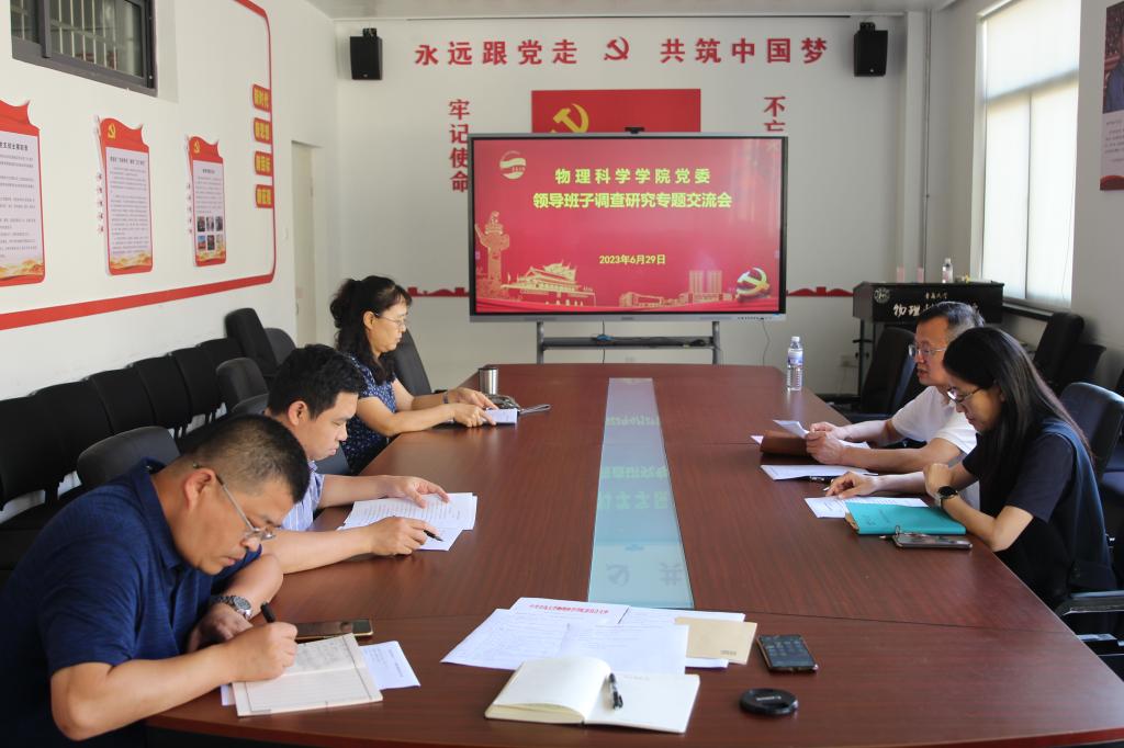新聞網(wǎng)訊 6月29日下午,物理科學學院黨委在博逸樓401會議室舉行領導班子調(diào)查研究專題交流會。會議由院黨委書記郝偉書記主持,學院全體黨政領導參加會議。