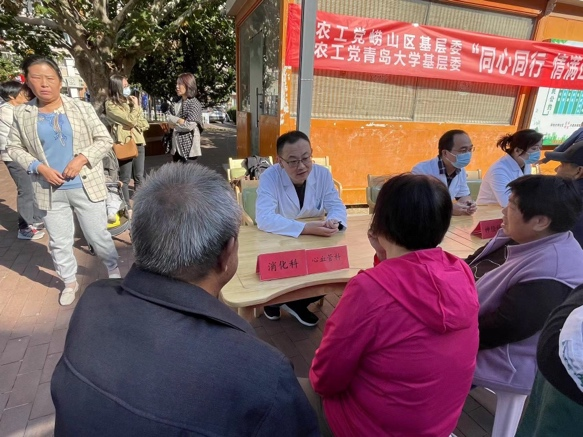10月21日,農工黨青島大學基層委員會聯合嶗山區基層委在嶗山區華都社區舉辦“同心同行,情滿山海”老年公益義診活動,為社區老年人提供關愛及醫療服務,受到社區居民的熱烈歡迎。農工黨青島市委會秘書長赫旭,市委會副主委王勇杰,原市委會副主委、青島大學基層委主任委員王巖青以及嶗山區統戰部門負責同志出席此次活動。支部黨員、附屬醫院有關專家團隊以及嶗山區基層委黨員同志參加了此次公益活動。